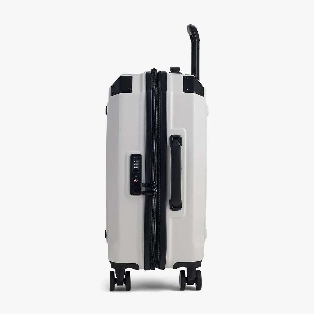 The lightweight yet impact-resistant hard shell offers excellent protection without adding bulk, while the crisp white finish gives it a striking, contemporary edge. Built to meet most airline cabin allowances, the Alpine glides effortlessly thanks to 360° double spinner wheels and a push-button telescopic handle, ensuring complete control wherever your trip takes you.