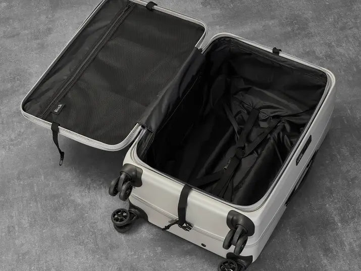 Inside, the Rock Eden cabin case offers a thoughtfully designed packing space. The fully lined interior includes packing straps to keep your belongings secure during travel, along with a zipped divider section that helps keep items organised and separated.
